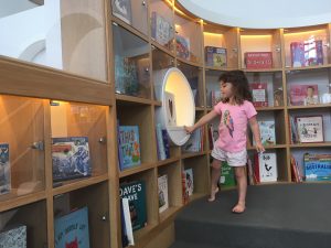 In addition there is a Library where kids can snuggle up with a book in a cosy nook. The selection of books available is excellent, with many new releases and other favourites. Story time, led by one of the Nubo educators, is held regularly. A highlight of this area is the elevated ‘hot air balloon’. A warning, however, that this accessed by steep, narrow stairs and young children will need close supervision and possibly assistance.
