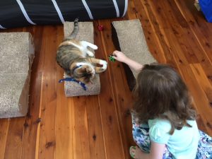 On arrival our friendly Cat Commander introduced all the cats to us including their humorous space-themed names, their personalities and preferences. There are a number of rules to remember when visiting Catmosphere. Most importantly, visitors may not pick up the cats. They are also encouraged to keep low to the floor, stay calm and pat the cats very gently. A basket of cat toys is available if any of the cats seem in the mood to play. Our five-year-old, who has had minimal exposure to cats but would dearly love to own a cat one day, quickly got the hang of interacting with the cats successfully.
