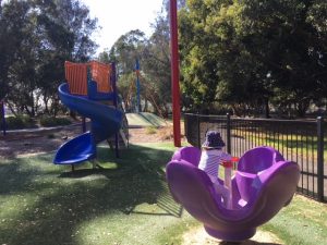 Ann Cashman Reserve, a lovely neighbourhood park, has a fully fenced playground with an appealing range of equipment for young children and a soft-fall surface.
