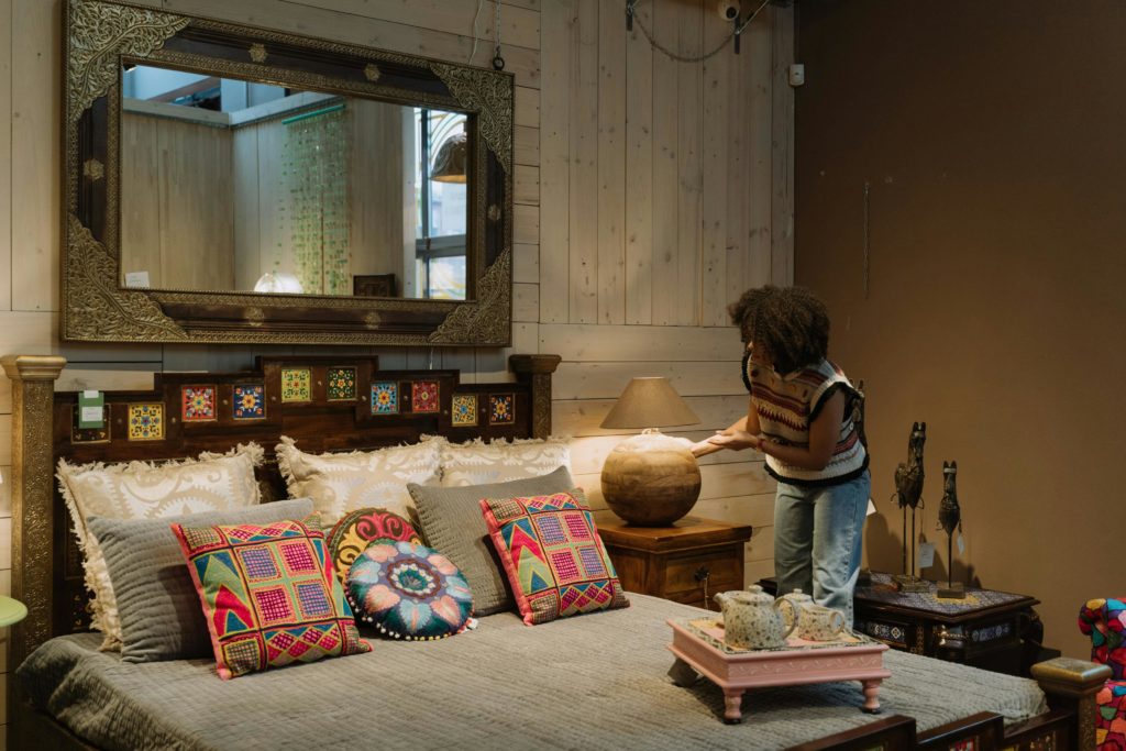 Stylist adjusting furniture. Image courteys of CottonBro, Pexels.com