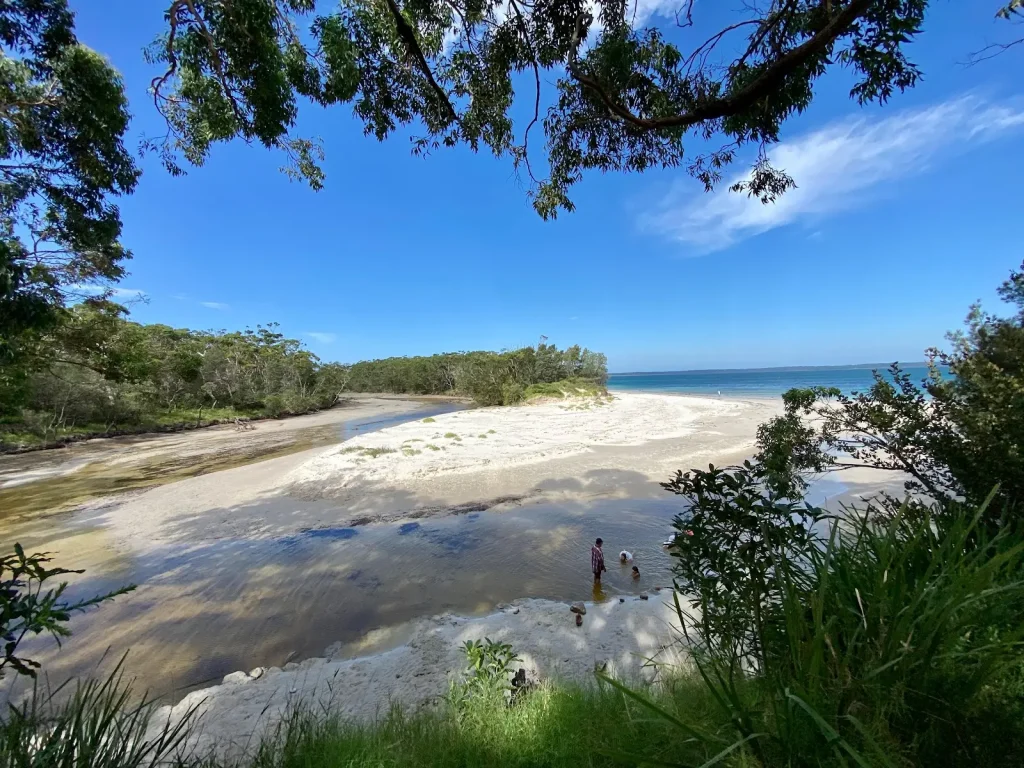 For something a little more low-key, Callala Bay is the South Coast’s best-kept secret. Tucked away on the northern shore of Jervis Bay, it’s a haven for families who prefer gentle waves, picnic-ready foreshore parks, and quieter beaches. Spend your mornings paddling in the shallows or wandering the Callala Bay boardwalk, where the kids can spot stingrays and soldier crabs at low tide.